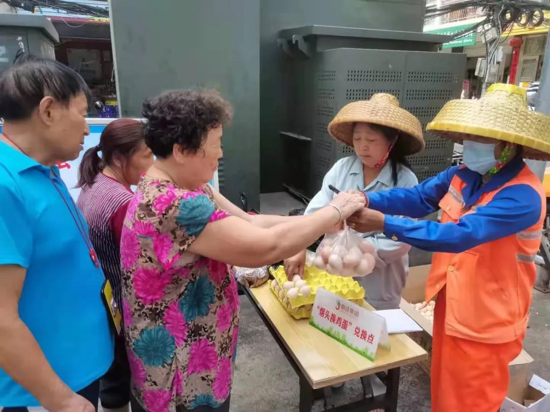 ▲開展“煙頭換雞蛋”環(huán)保宣傳活動