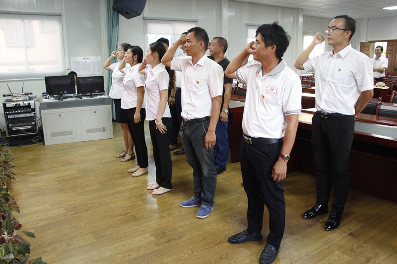 面對黨旗,高舉右手,莊嚴(yán)宣誓:“我志愿加入中國共產(chǎn)黨,擁護(hù)黨的綱領(lǐng),遵守黨的章程,履行黨員義務(wù),執(zhí)行黨的決定,嚴(yán)守黨的紀(jì)律,保守黨的秘密,對黨忠誠,積極工作,為共產(chǎn)主義奮斗終身,隨時準(zhǔn)備為黨和人民犧牲一切,永不叛黨。”鏗鏘有力的宣誓聲,響徹大廳。